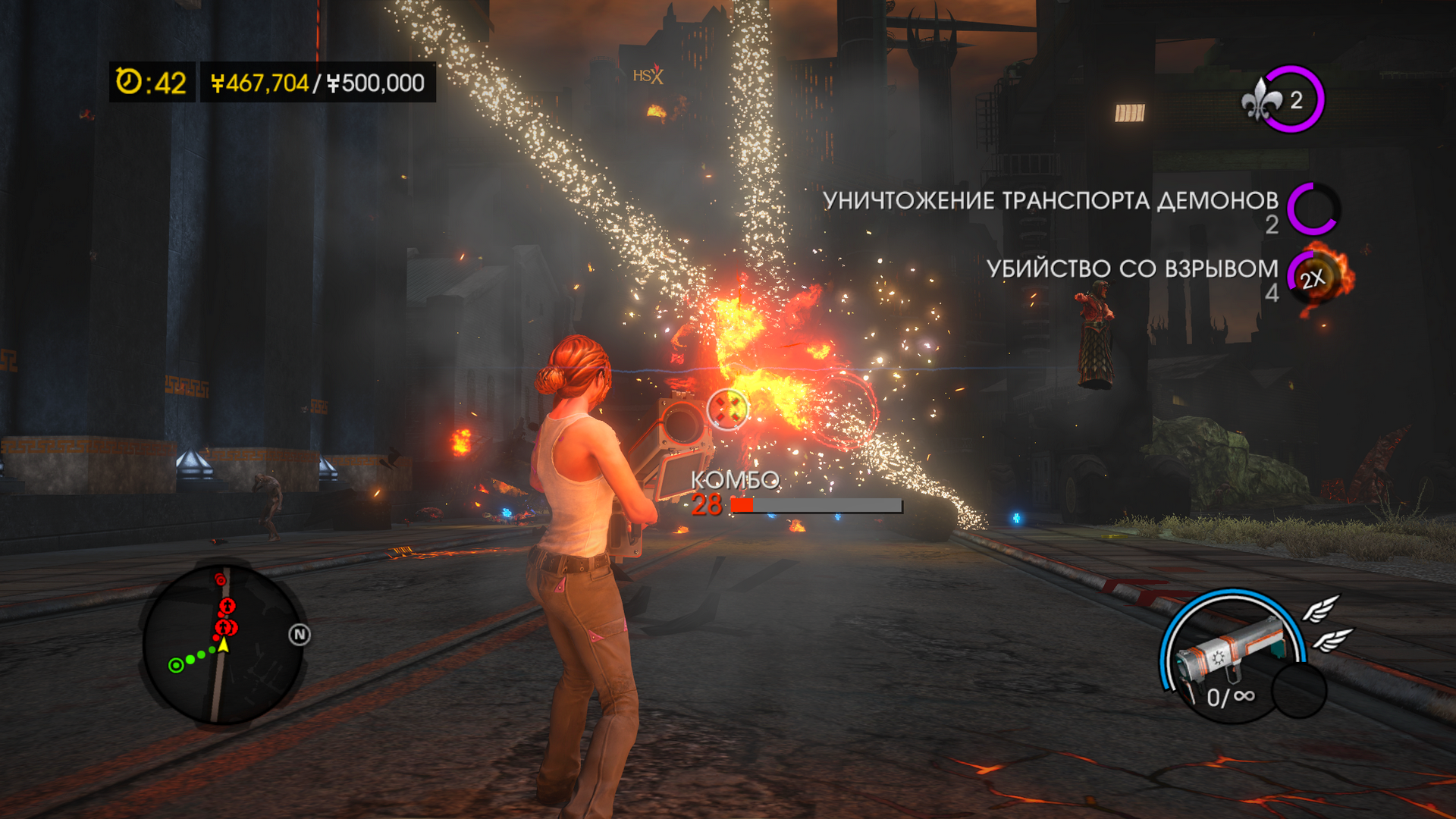 Теперь мы можем бегать, опрокидывая машины, немного летать, собирая сферы (нужны для прокачки). Ну и появился целый арсенал разрушительных способностей.