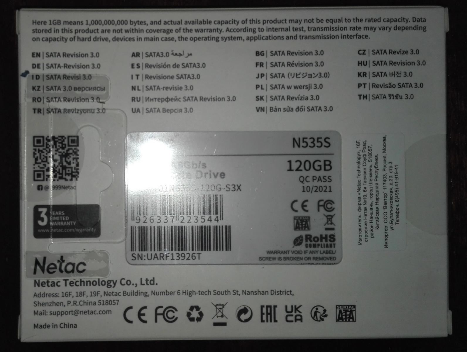 Очень короткий обзор на SSD накопитель Netac N535S объемом 120 Гб