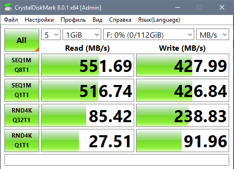 Показатели чтения 4К крайне низкие. Я еще два раза перетестировал, но лучше этого результата не получил: