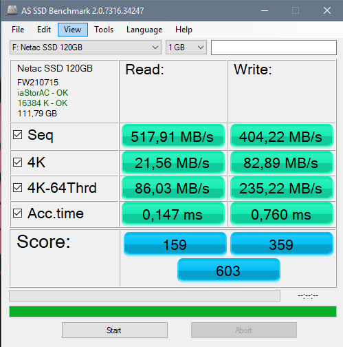 AS SSD Benchmark показывает следующее: