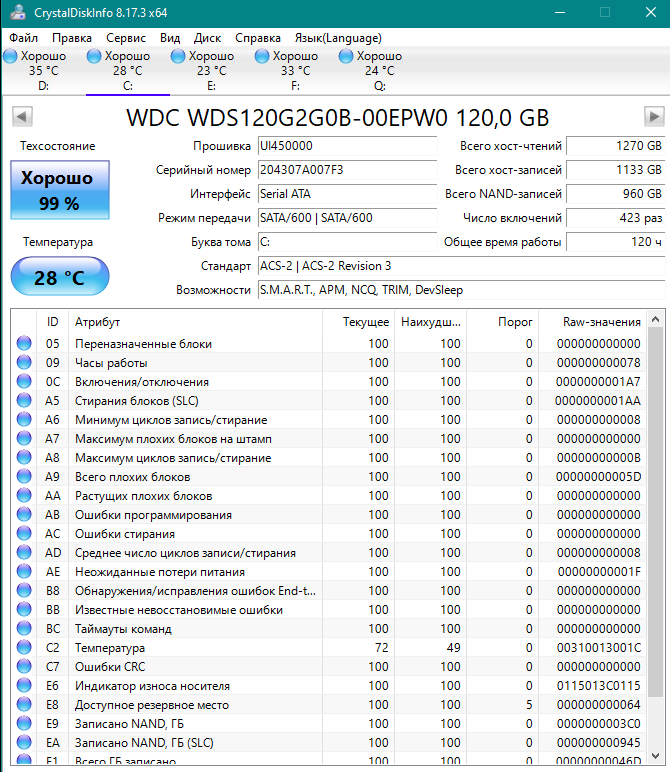 CrystalDiskInfo - мониторинг за состоянием накопителей.