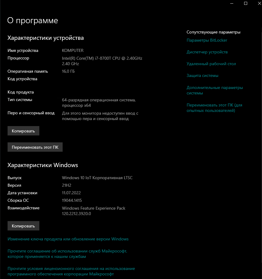 Ну и игровой ПК. Тут только один браузер, нет музыки, видео. Зато больше места занимают бенчмарки. Версия Windows такая же, как на ноутбуке.