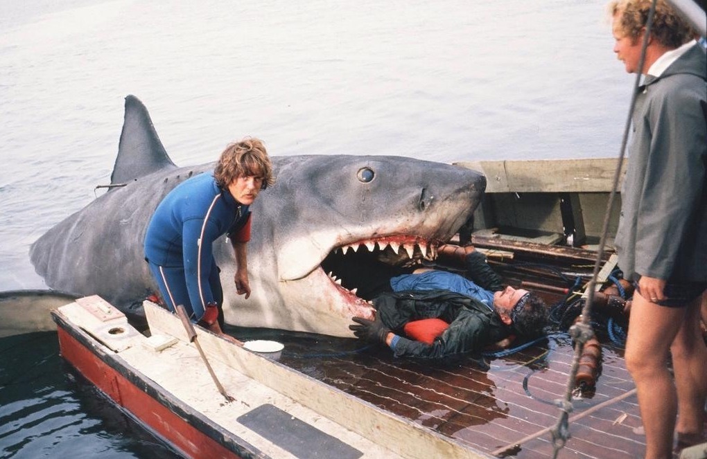 Начнем с акул. Именно фильмов про акул я посмотрел больше всего. Культовость темы пошла с фильма 1975 года "Челюсти" ("Jaws"). Фильм иногда приписывают к жанру ужасов. Я не согласен в принципе. Да, это триллер, приключение. Но вот ужасы... Возможно, для 1975 года только. Но не важно, это один из лучших фильмов жанра. Тут есть нормальный вменяемый сюжет, неплохие актеры.