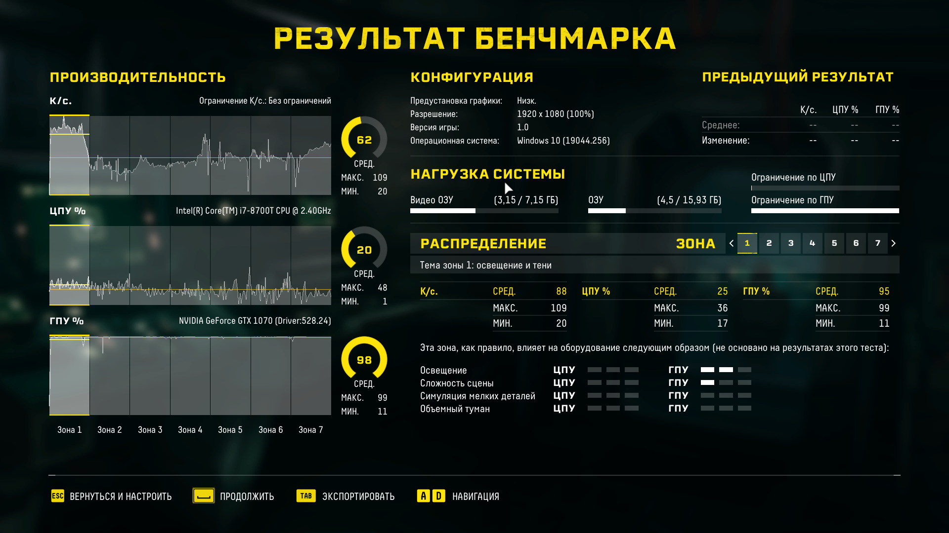 После запуска, игра посчитала, что настройки мне просто необходимы минимальные. Я в курсе слухов об "оптимизации" в игре и согласился. Тут имеется встроенный бенчмарк. Вот, что выдал он на минимальных настройках: