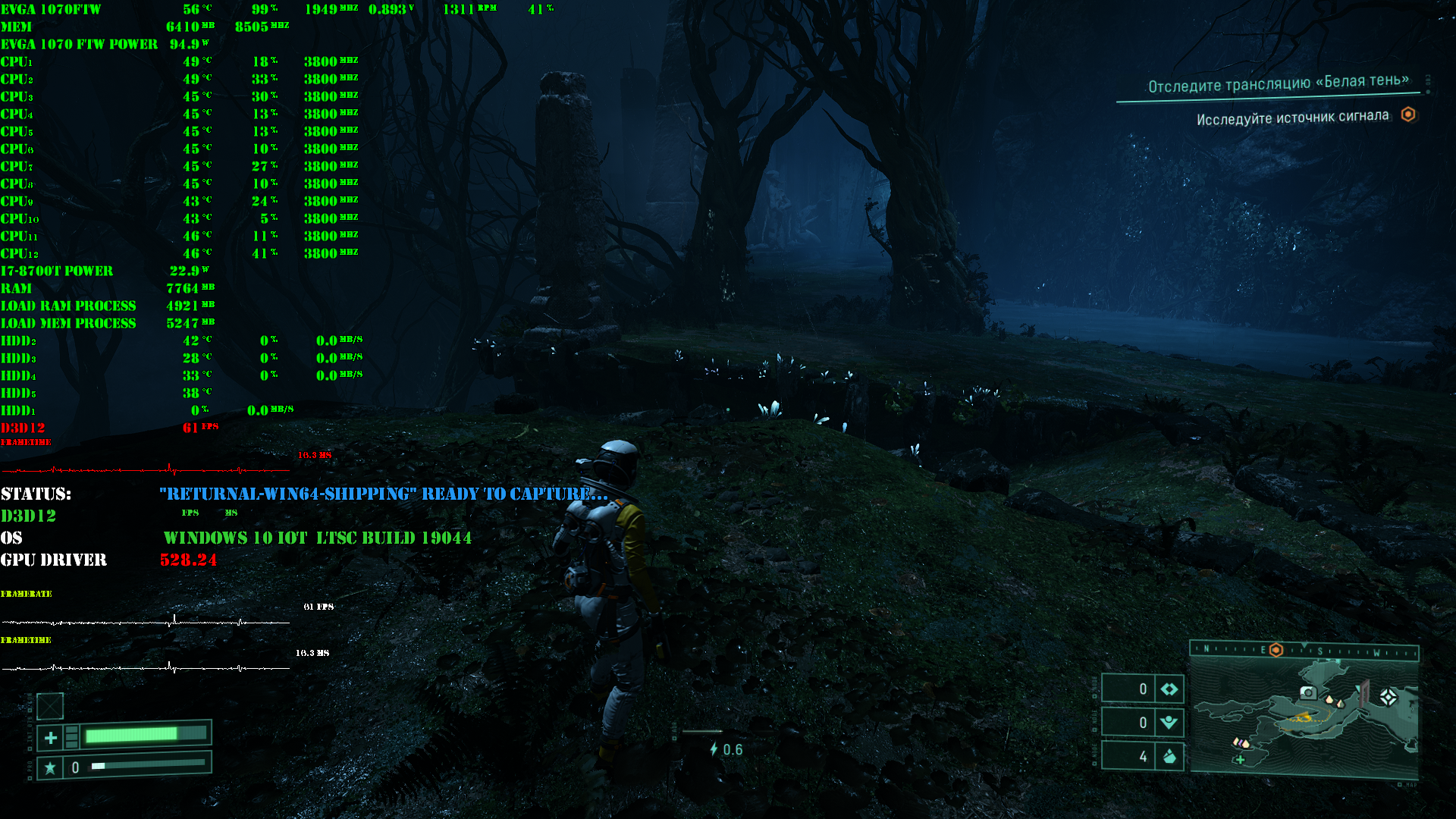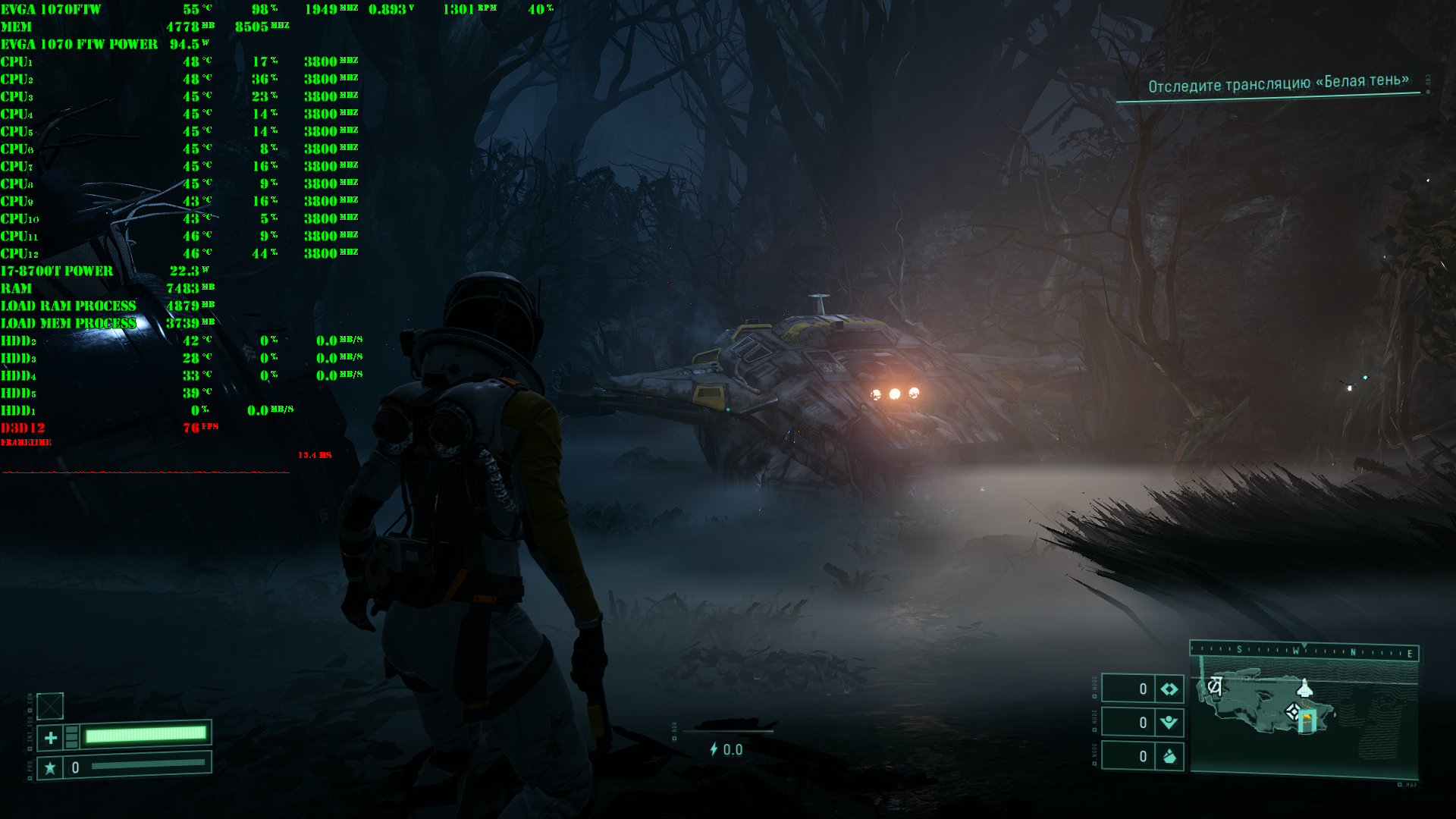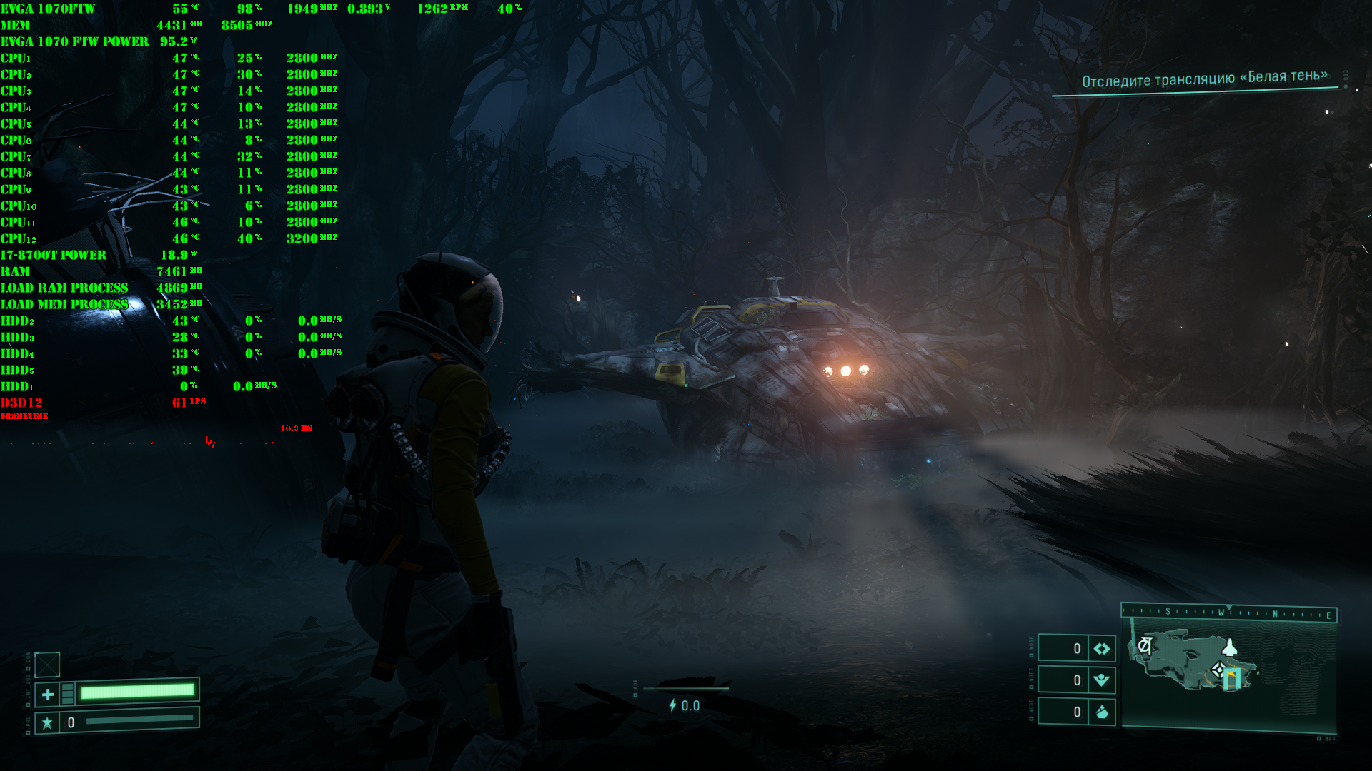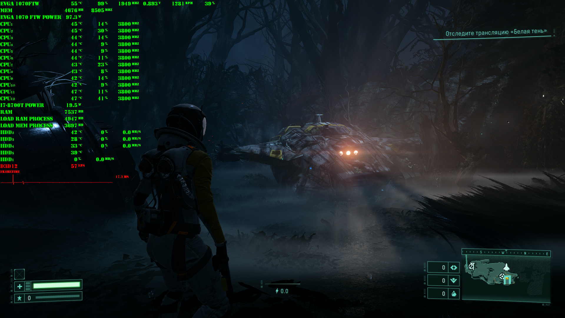 Общее представление о производительности дал бенчмарк, но стоит проверить в самой игре. Немного побегав по локации и, постреляв "зверушек", приступаю к тесту.