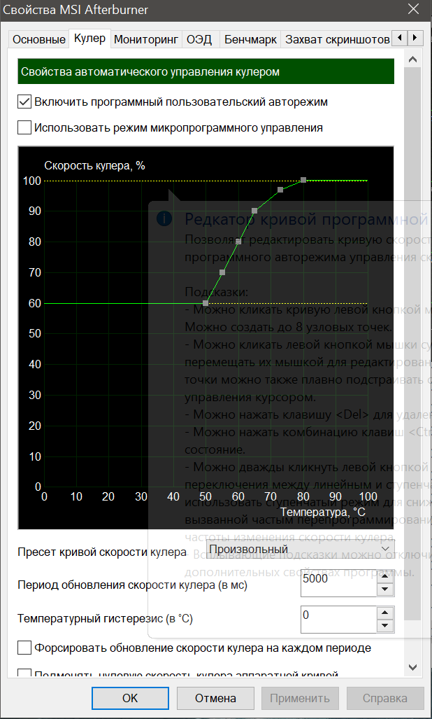 Саму кривую оборотов пришлось "подшаманить" через MSI Afterburner.