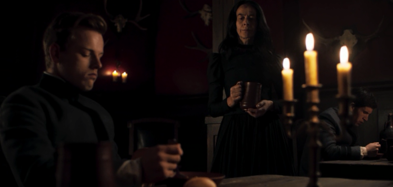 И опять, как в предыдущем фильме про Эдгара По, погода играет на создание нужной атмосферы. Каких-то скримеров тут нет, но временами фильм очень давил на психику, в том числе и правильным музыкальным сопровождением.
