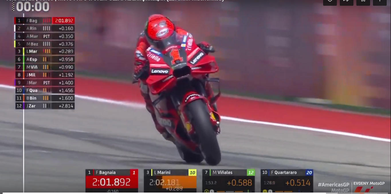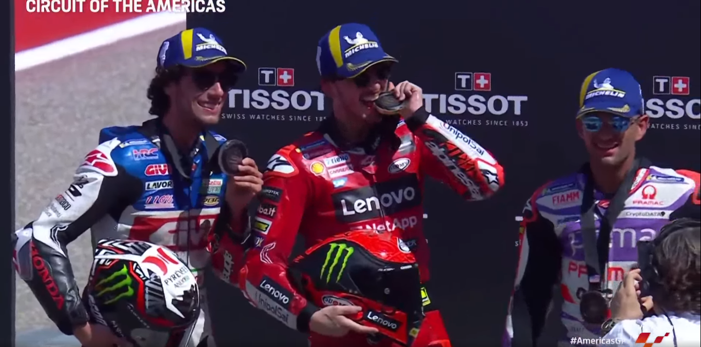 Переходим к мотогонкам MotoGP. В США, на Гран-При Америк (именно такое название) в спринте в субботу (ночью по Москве) победил Франческо Баньяйя, который стартовал с поул-позиции.