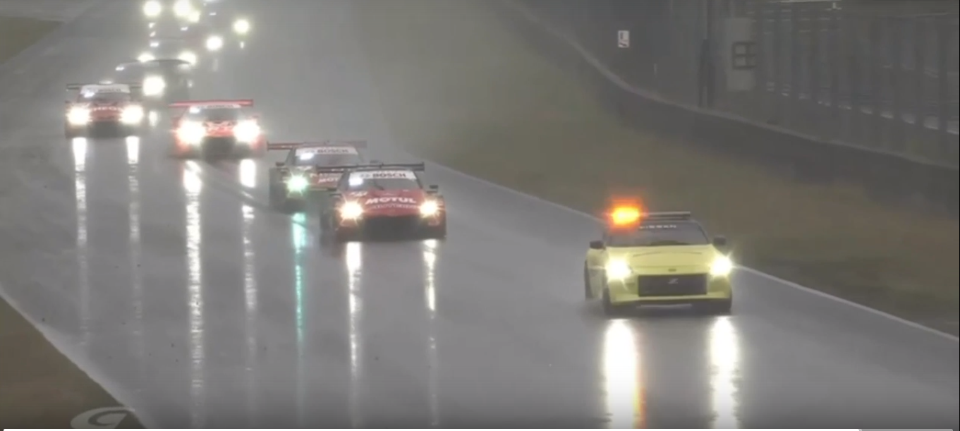 В Японии, на трассе Окаяма, состоялся первый этап гонок Super GT. Что из себя представляют данные автомобили? Это кузовные гонки, где машины разделены на два подкласса: старший GT500 и младший - GT300. Младший класс по параметрам близок к мировому GT3. А вот старший представляет собой автомобили, так называемого класса "силуэты", которые только внешне отдаленно напоминают серийные машины. Наиболее близки к ним были автомобили DTM прошлых лет (сейчас там ездят на машинах класса GT3). Протяженность гонки приличная и есть смена пилотов. А кроме того, серия интересна тем, что там присутствует аж 4(!) производителя шин: Michelin, Bridgestone, Dunlop и Yokohama. Сама гонка проходила вначале в сухих условиях, но вот концовка опять закончилась сильным ливнем. Дважды ее приостанавливали красным флагом и сама концовка прошла под машиной безопасности.
