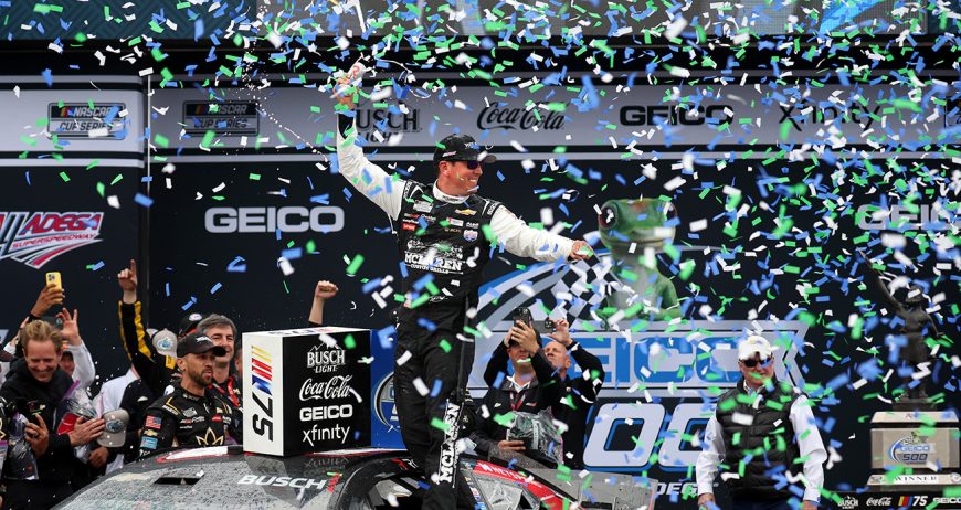 А вот саму гонку выиграл Кайл Буш из команды Richard Childress Racing.