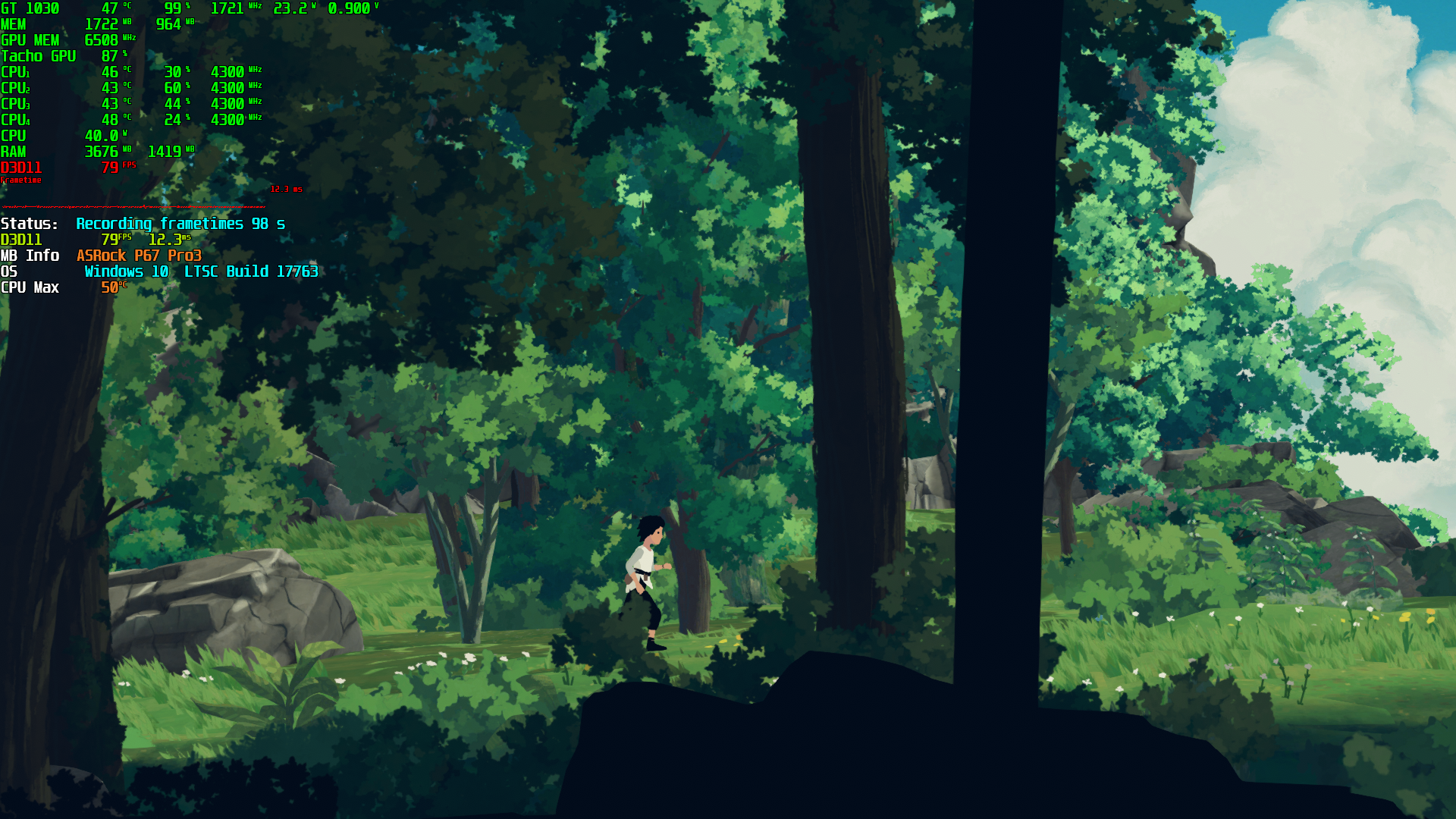 Вывод: GT 1030 вполне справилась со своей задачей. Также хватило и 4-х поточного процессора. Но игра оптимизирована не лучшим образом: несмотря на то, что находилась она на SSD накопителе, иногда присутствовали фризы. Скорее всего, это связано с подгрузкой "локации". Не смертельно, но факт имеет место.