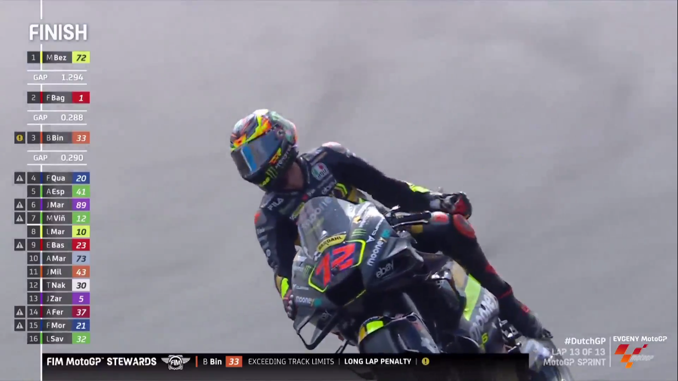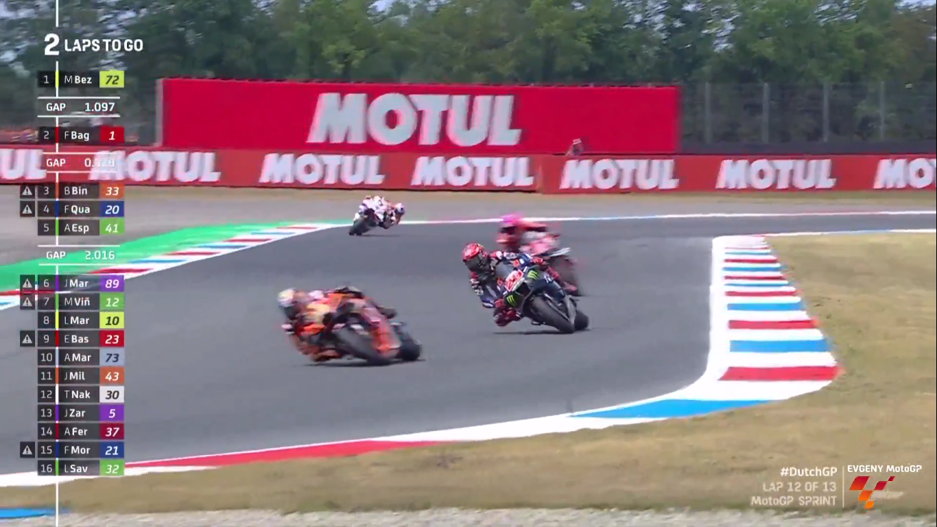 Субботний спринт в MotoGP проходил на знаменитой трассе в Ассене (Нидерланды). Поул-позишн взял Марко Беццекки (Mooney VR46 Racing Team).