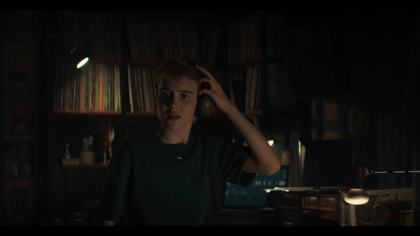 Все это он забирает с собой. А, так как сынодочь является доморощенным диджеем, то начинает крутить пластинки. Образовавшаяся какафония, вызывает какого-то древнего духа, что раскорячивает их мамашу (Алиса Сазерленд) в лифте в непристойной позе.