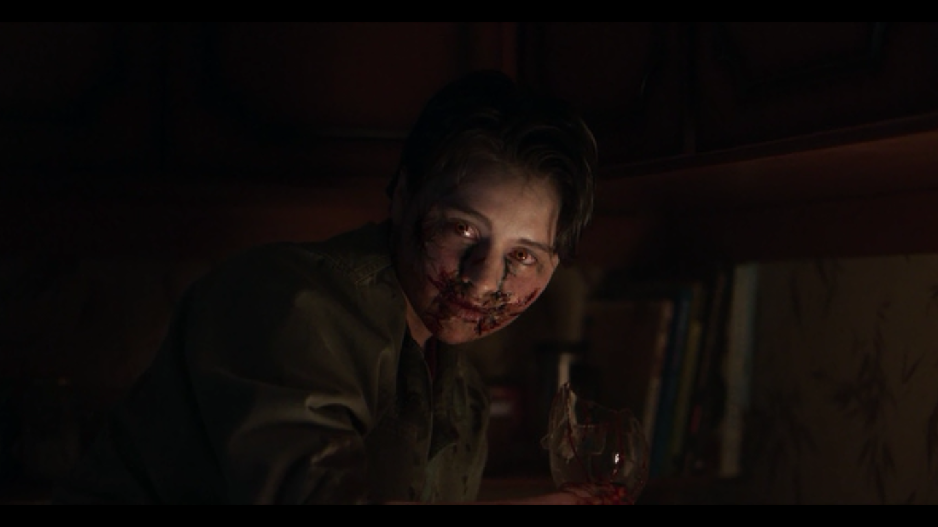 заражает старшую доченьку, потом немного разбирает на части соседей по лестничной площадке. Зараженная дочь заражает сынодочь. И вся орава нежити пытается доконать тетю и младшенькую... Количество кровищи к концу становится запредельным.