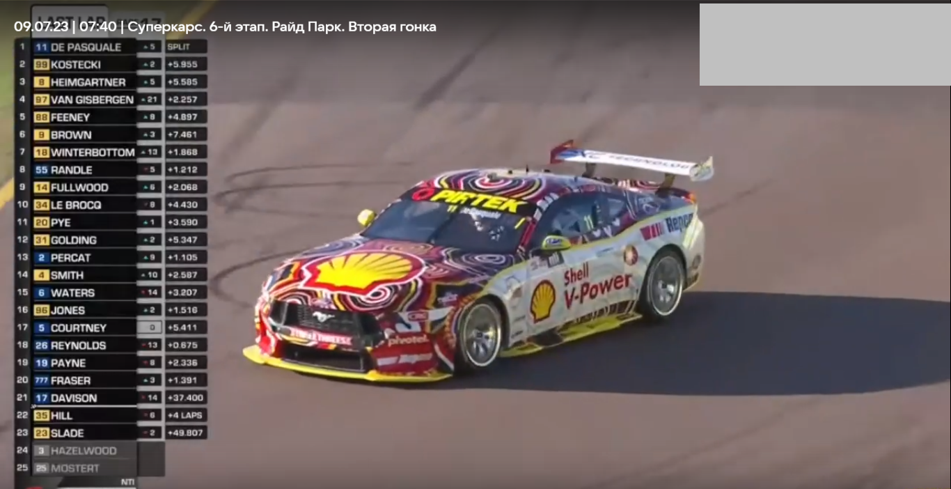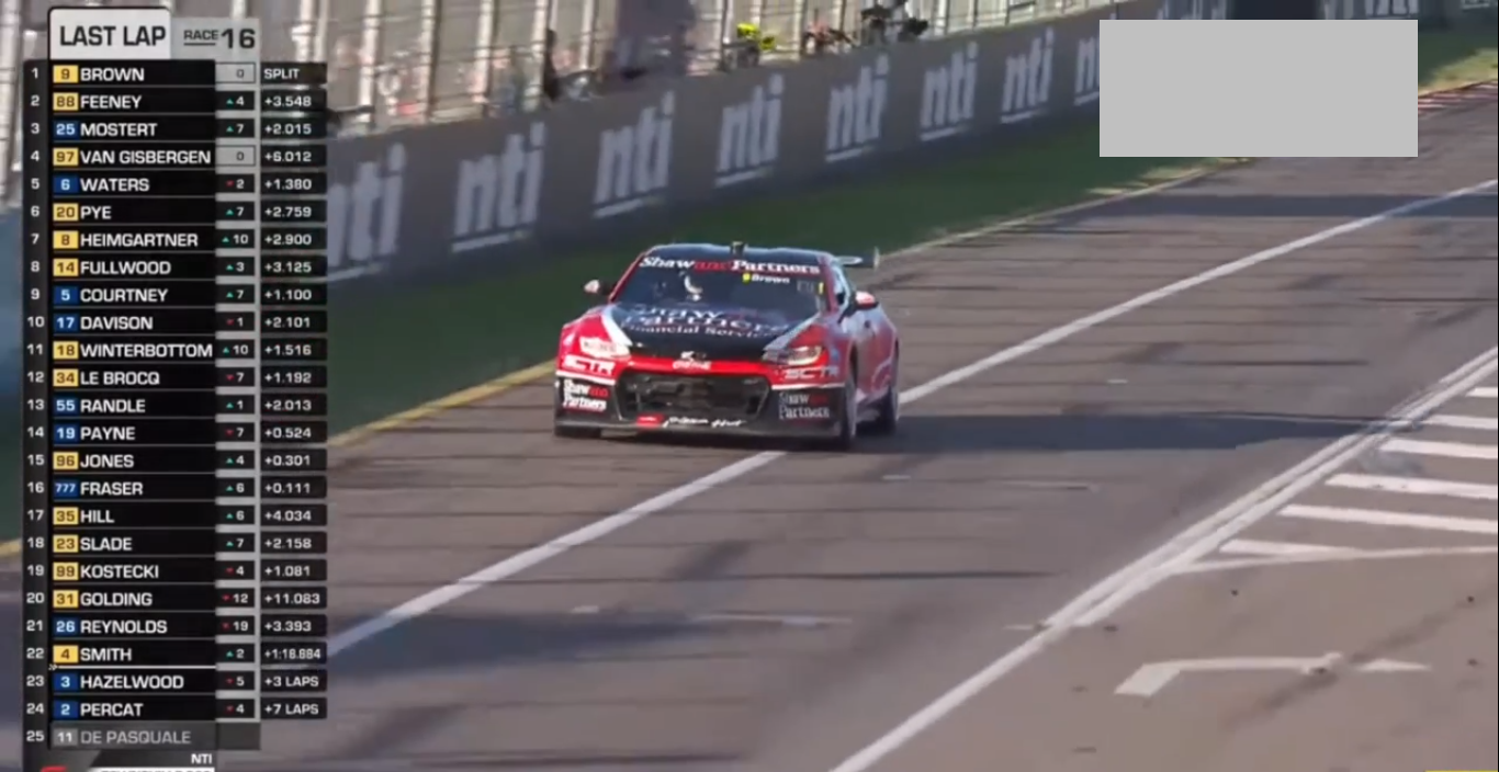Победу одерживает обладатель поул-позишн, Уилл Браун (Chevrolet). На втором месте приехал Финней (Chevrolet), на третьем - Мостерт (Ford).