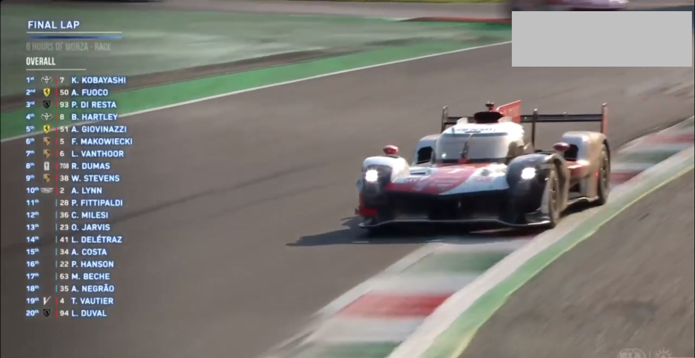 WEC. 6 часов Монцы. Гонка изобиловала авариями, вылетами. Но особой борьбы за лидерство в главном классе гиперкаров не наблюдалось. Победу завоевал экипаж №7 Toyota (Конвей, Кобаяши, Лопес).