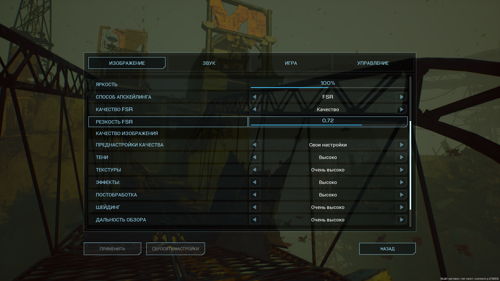 Очень высокие + FSR (качество):