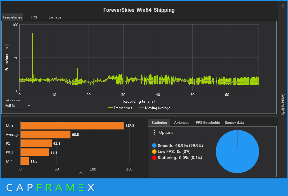Запись тестового отрезка производился программой CapFrameX.