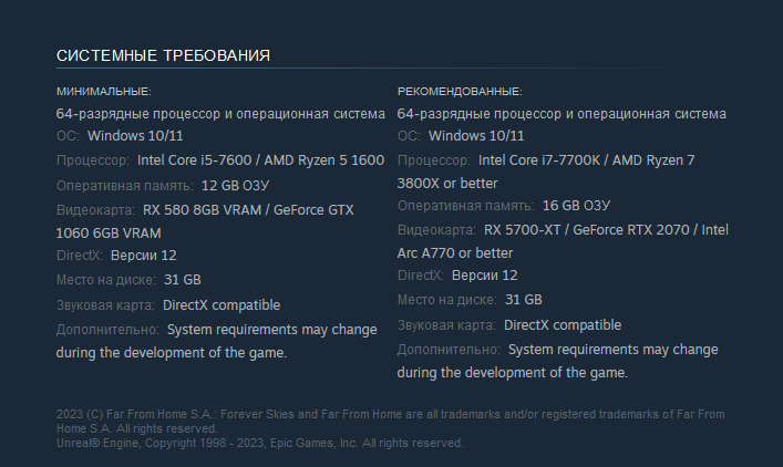 Краткое описание игрового процесса из того же Steam: "Forever Skies - это игра про выживание с видом от первого лица. Вернитесь на Землю, разрушенную экологической катастрофой, управляйте высокотехнологичным дирижаблем, модернизируйте и чините его... Собирайте ресурсы чтобы выжить, сражайтесь с опасностями...