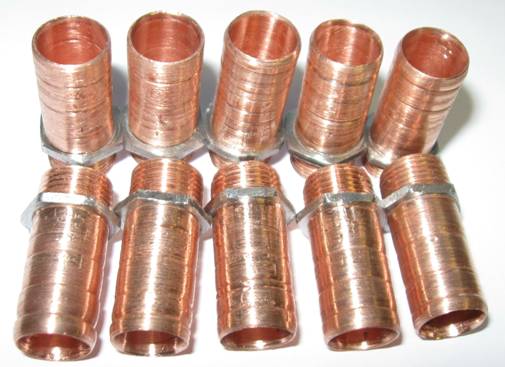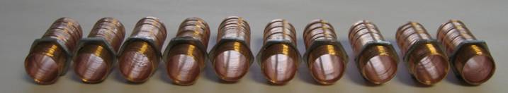 Итак, примерно за 5 часов работы было изготовлено 10 штуцеров из подручных и недефицитных материалов с помощью обычных слесарных инструментов, при этом удалось избежать использования какого-либо сложного промышленного оборудования. Ну, и напоследок, несколько фотографий готовых штуцеров:<br/>