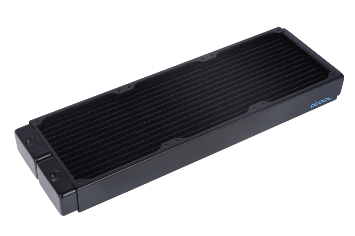 4) Радиатор. На этой позиции существует множество вариантов. Можно заморочиться и поискать где-то в продаже радиаторы от Black Ice. Но в целом вы не будете разочарованы, если возьмёте крепкую классику - Alphacool NexXxoS XT45 Full Copper 420mm radiator V.2
