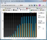 В программе HD Tune часто можно увидеть некорректное отображение burst rate, СPU usage, но пока нам эти параметры неинтересны. Давайте проверим отличия режимов записи, и определим, чем обусловлены различия производительности в XP и Vista. Вот запись блоками 64КB а-ля XP и 1МВ: