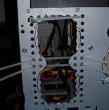 Ну, надоело мне это дело каждые две недели вынимать и пылесосить. А то второй нехолодный винт - WD ABYS RE2 - норовил соседей вскипятить до температур под 50 градусов господина Цельсия, что не есть гуд. И чесались у меня руки снабдить нижнюю корзину каким-нибудь нешумным и компактным охладом, чтоб можно было ее наконец задействовать под таких горячих товарищей, а холодные чтоб остались в боксе. Но смущали вульгарные круглые дырки, по площади меньшие, нежели сама стенка.