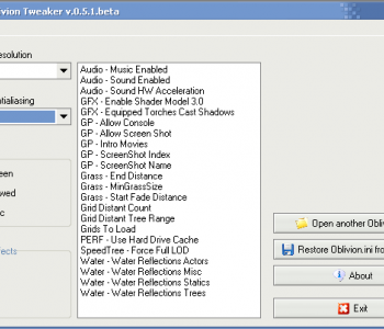 TES4-Oblivion TweakerЭто версия 0.5.1.beta, первая релизная бета-версия, посему не судите строго. В этой версии интерфейс на английском языке, а описания твиков ini файла на русском. В...