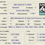 Сокет 754. Память Elixir 3200 на частоте 504 MHz 3-3-3-5 при напряжении 2,8 В. SuperPi 1М=37.2 c. WinRAR 3.40 = 540 kb/s. Большая частота памяти очень полезна для игр. Мамка глючная, не работает управление оборотами кулера, разгон FSB из биоса вообще не идет. Только из-под Винды by ClockGen.