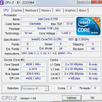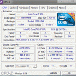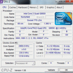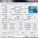 в биосе матплаты нету параметра напряжения Vcore, поэтому вот все что удалось. почему то Cpu-z показывает 1,08 а аида64 показывает 1,388 при макс загрузке. такой разгон стоит для 24/7. 66.3 гигафлопса, в шахматах 13622. проц просто открыл второе дыхание для видяхи GTX285 :)