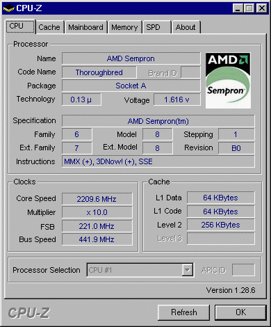 Результат разгона AMD Sempron (Thoroughbred)