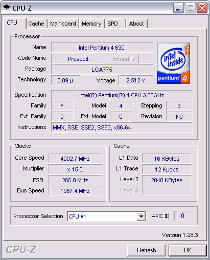 Результат разгона Intel Pentium 4 (Prescott-2M)