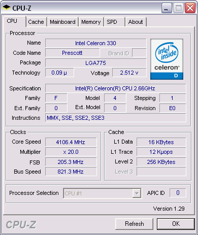 | Процессор (ядро) | Intel Celeron D (Prescott-256) |
