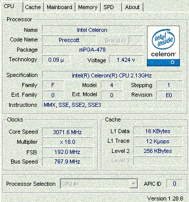Результат разгона Intel Celeron D (Prescott-256)