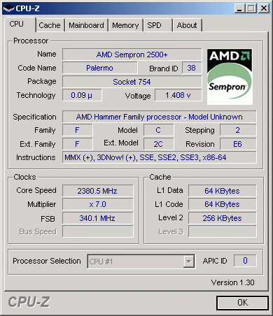 Результат разгона AMD Sempron (Palermo)