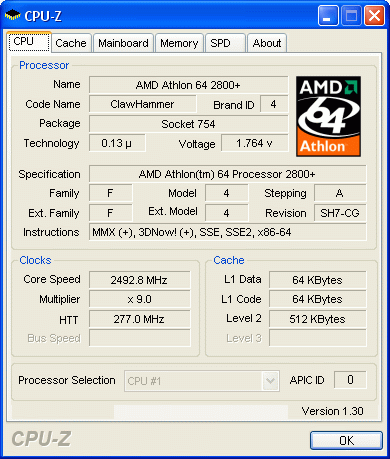 | Процессор (ядро) | AMD Athlon 64 (ClawHammer) |