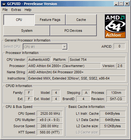 | Процессор (ядро) | AMD Athlon 64 (ClawHammer) |