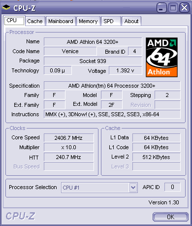 Результат разгона AMD Athlon 64 (Venice)