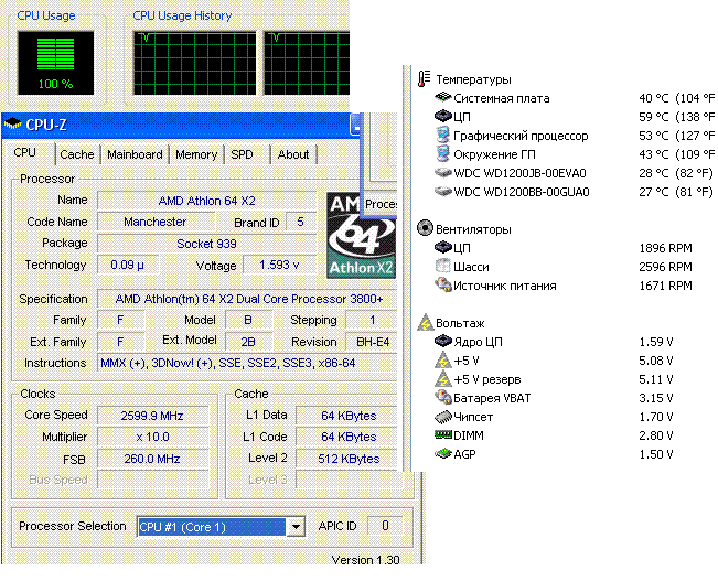 Результат разгона AMD Athlon 64 X2 (Manchester)