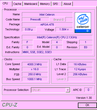 | Процессор (ядро) | Intel Celeron D (Prescott-256) |