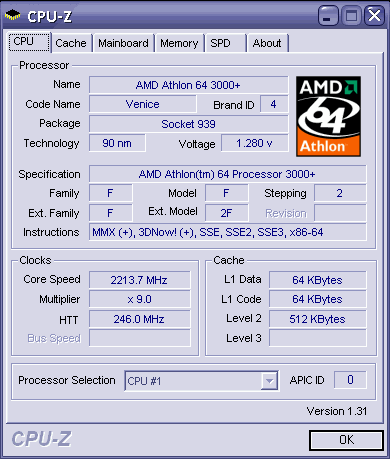 Результат разгона AMD Athlon 64 (Venice)
