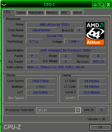 Результат разгона AMD Athlon 64 (ClawHammer)