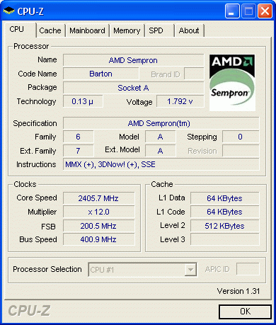 Результат разгона AMD Sempron (Barton)