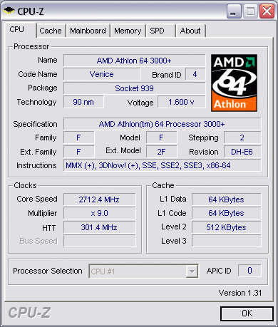 | Процессор (ядро) | AMD Athlon 64 (Venice) |