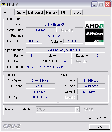 Результат разгона AMD Athlon XP (Barton)