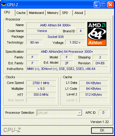 | Процессор (ядро) | AMD Athlon 64 (Venice) |