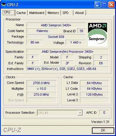 Результат разгона AMD Sempron (Palermo)