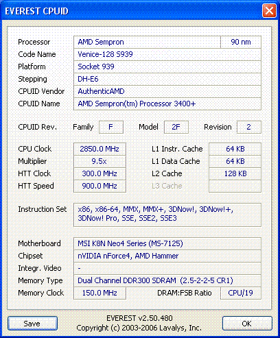 Результат разгона AMD Sempron (Palermo)