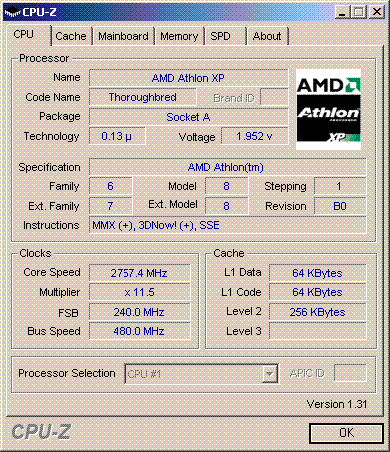 | Процессор (ядро) | AMD Athlon XP (Thoroughbred) |