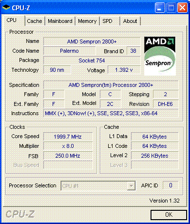 Результат разгона AMD Sempron (Palermo)